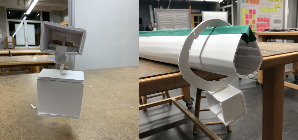 Our next step was to research the existing patents and literature on dorm storage solutions. We found five applicable patents and investigated these more thoroughly; we made sure to note both the shortcomings and the advantages of each idea. During our research process, we also examined commonly used convenient storage systems with applications different than dorm rooms. Some examples we thought about were suitcases, roof racks, table and desk organizations, and storage beds. One common element shared by all of these solutions is that they target spaces that otherwise are not actively used by people. Below are some outcomes from our divergent brainstorming and prototyping stage: