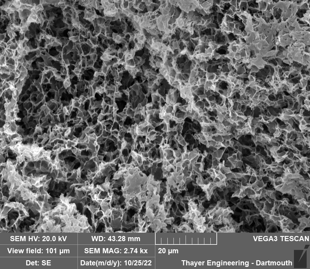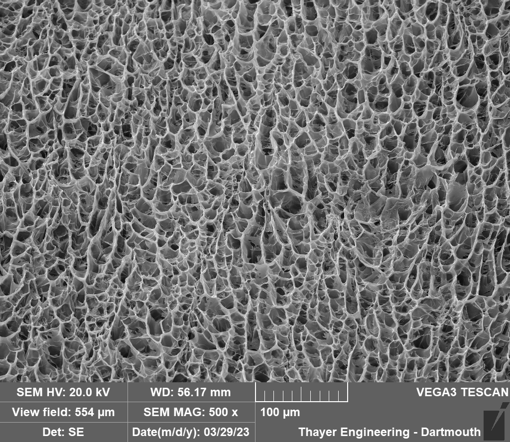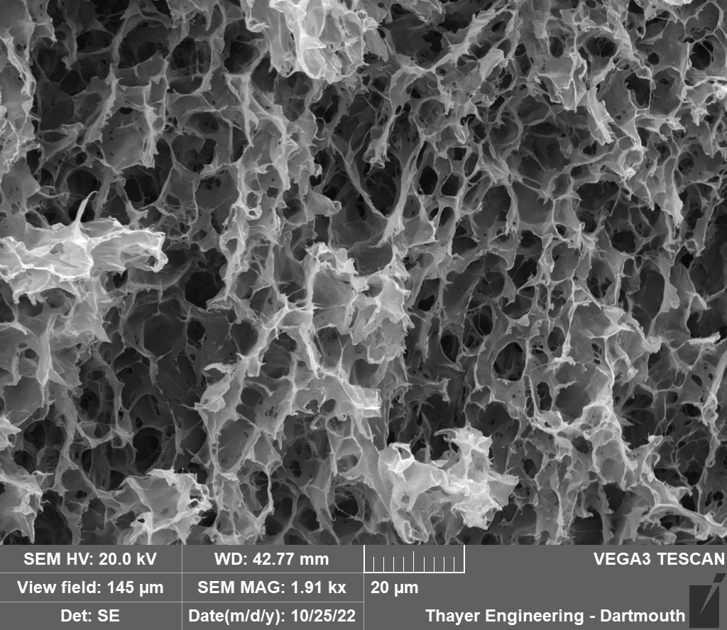 Prof. Chenfeng Ke’s Functional Materials Lab under the Dartmouth College Department of Chemistry found a pH-controlled shape-morphing hydrogel in 2018. My project at the Hixon Tissue Engineering Lab at Dartmouth College Thayer School of Engineering involved focusing on the question of whether cryogels made out of these hydrogels could be utilized as scaffolds for bone regeneration. Cryogels are being widely tested in tissue engineering as scaffolds due to their peculiar porosity and high specific surface area.