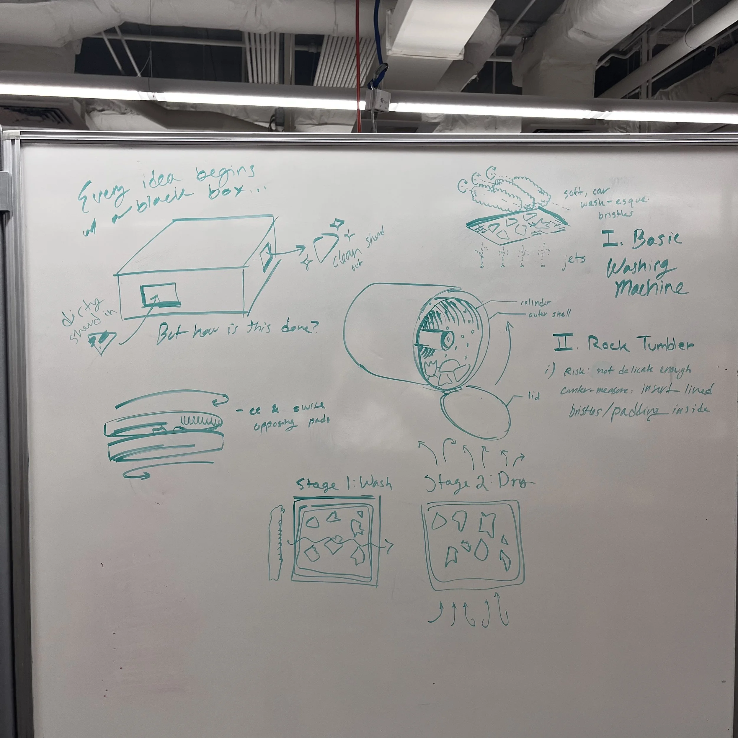 Our first step was to conduct interviews with potential users (mainly undergraduates working at the dig site) and stakeholders (expert archeologists and conservators) to understand the challenge, risks, user needs and the solution space better. I personally conducted 3 out of 5 of these interviews. Based on these user interviews, conversations with our sponsor Dr. Peter Cobb and scientific research we have done, we fleshed out our metrics of success for the washing and drying solutions. Our main objectives were to reduce human labor, clean effectively, protect artifacts, clean a range of sherd sizes, maintain sherd organization, dry sherds effectively, and reduce resource utilization.